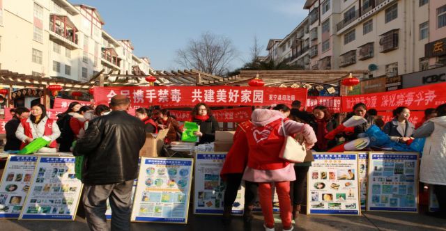 2月12日,德昌县司法局会同县禁毒办、县公安局、县人社局、团县委和县妇联等禁毒委成员单位,在县城半边花园举行了今冬明春禁毒防艾集中法治宣传教育活动。