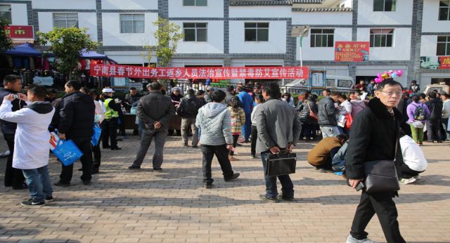 春节来临之际,是农民返乡的高峰期,为进一步提高返乡人员法律意识和法治观念,,依法保护自身合法权益,2月11日,宁南县委、县司法局、大同镇人民政府牵头组织县法院、、县卫计局、县禁毒大队,县交警大队等11个单位在大同镇新集镇开展春节外出务工返乡人员法治宣传暨禁毒防艾宣传活动。
